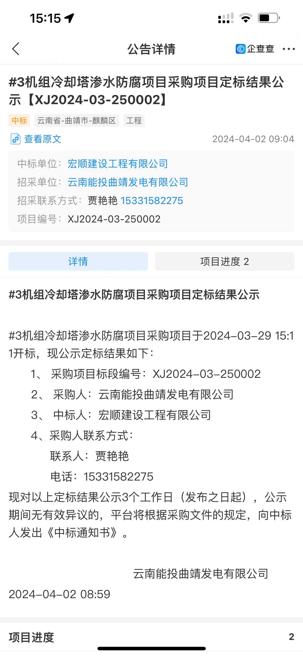 熱烈祝賀我公司中標(biāo)云南機組冷卻塔滲水防腐項目